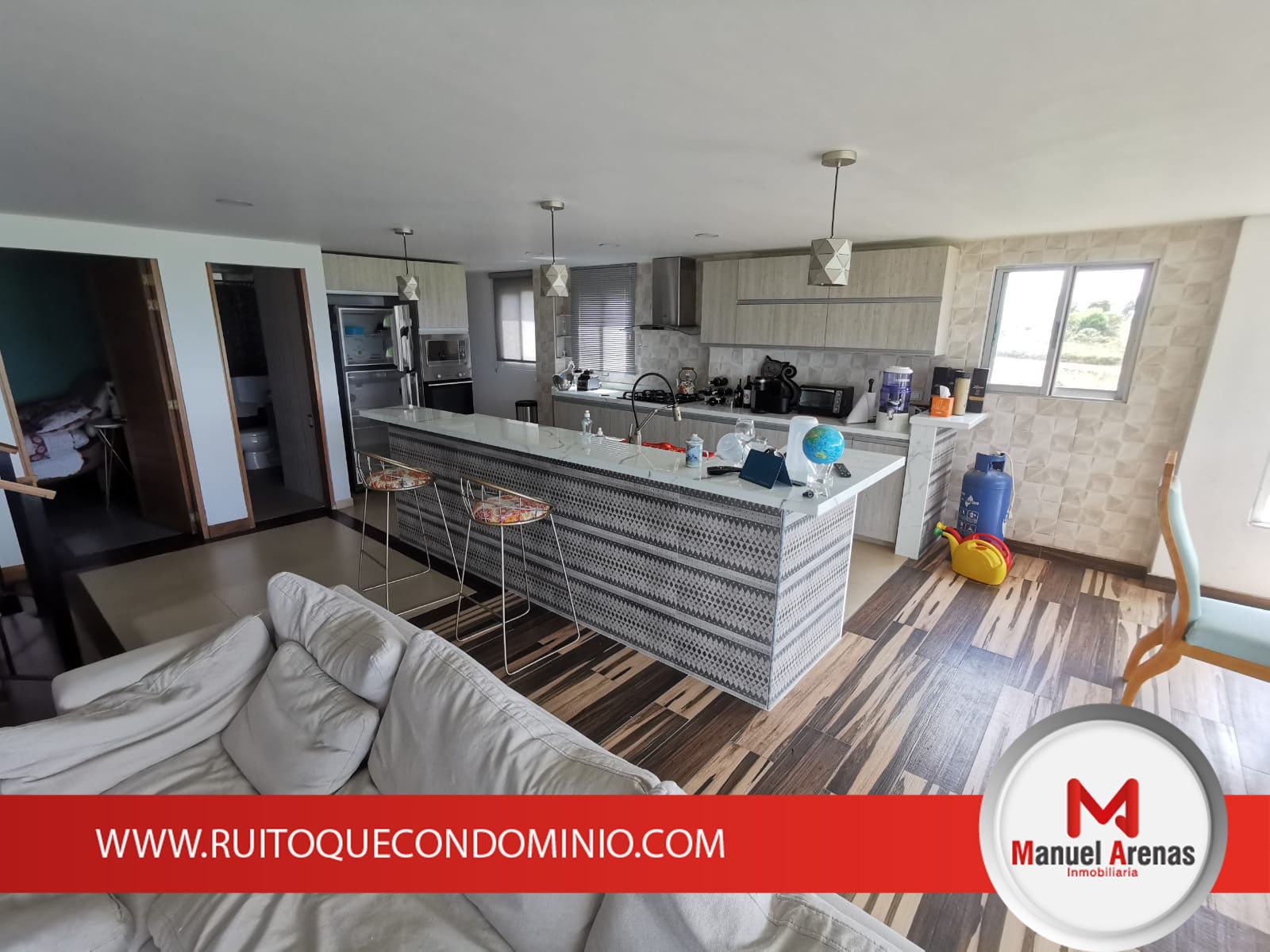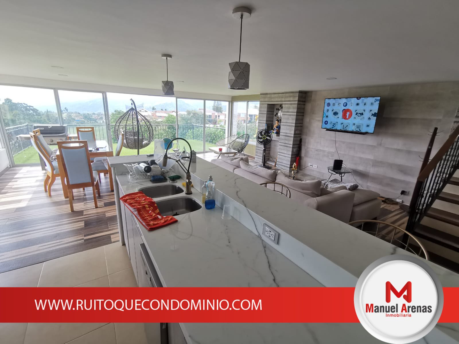 Espectacular casa con la mejor vista del condominio, ubicada en Ruitoque Condominio en Conjunto El Laguito. De 320 m2 construidos, cuenta con espacios amplios, tres alcobas con su respectivo baño privado y una gran zona verde.